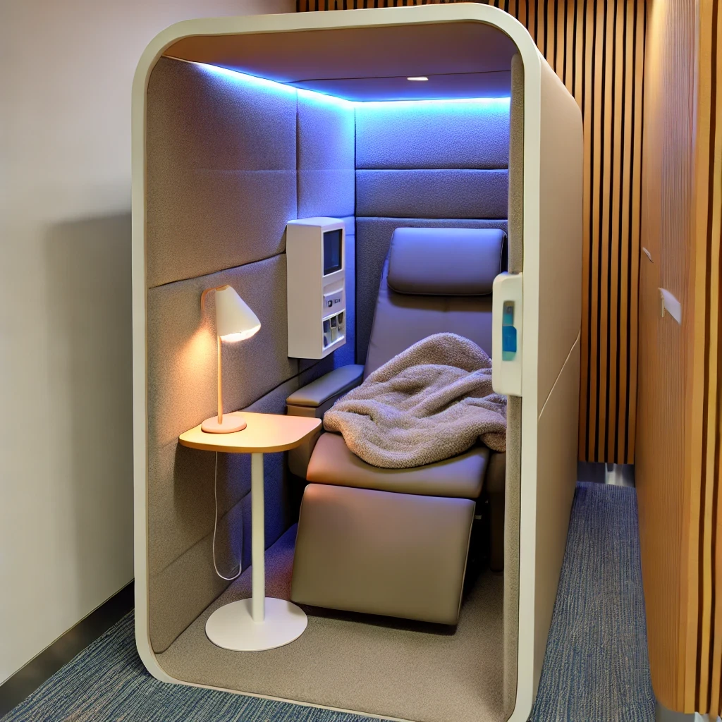 NapKnock provides convenient, cozy rest pods in public areas, catering to busy individuals seeking a flexible recharge spot during their day.